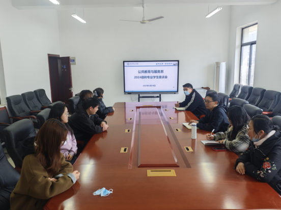 3月18日,公共教育与服务系在槽郢校区2栋404会议室召开了2024级转专业学生座谈会。系党总支副书记宋邦林、相关班级辅导员及2024级转专业学生参加了座谈会,会议由宋邦林主持。